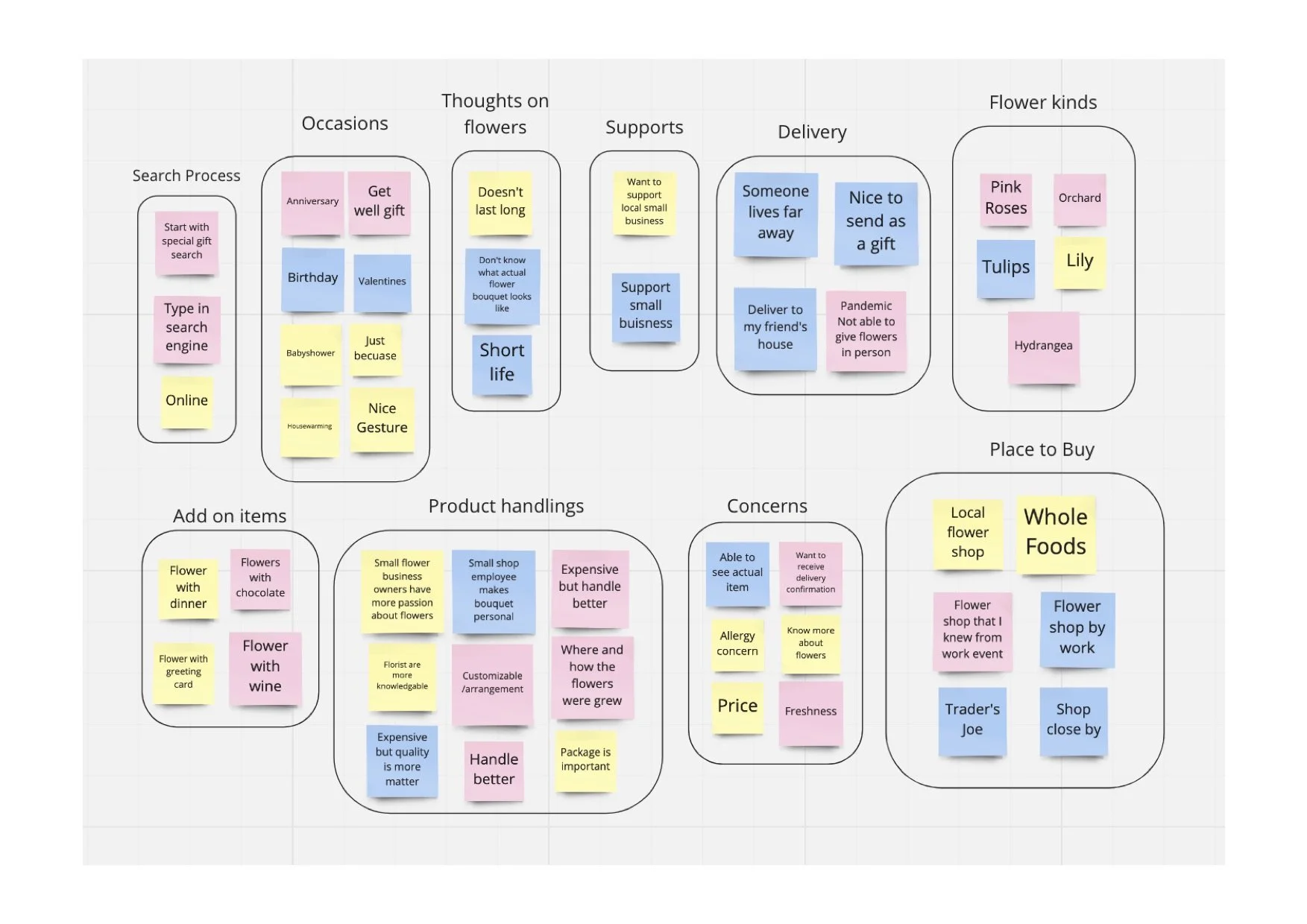 I have conducted 4 user interviews from 2 males and 2 females. Date of perspective on flowers and habits of purchasing flowers as gifts.